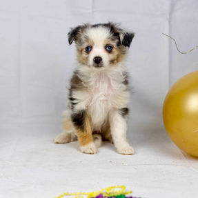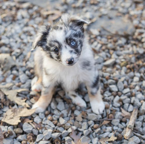 BLUE MERLE FEMALE WITH ONE BLUE EYE/ ONE BROWN EYE AND A TAIL. SOLD
